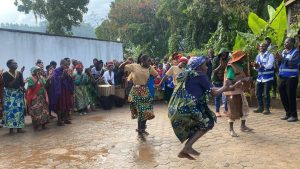 The Batwa community showing their gratitude after the cultural costumes were handed over to them