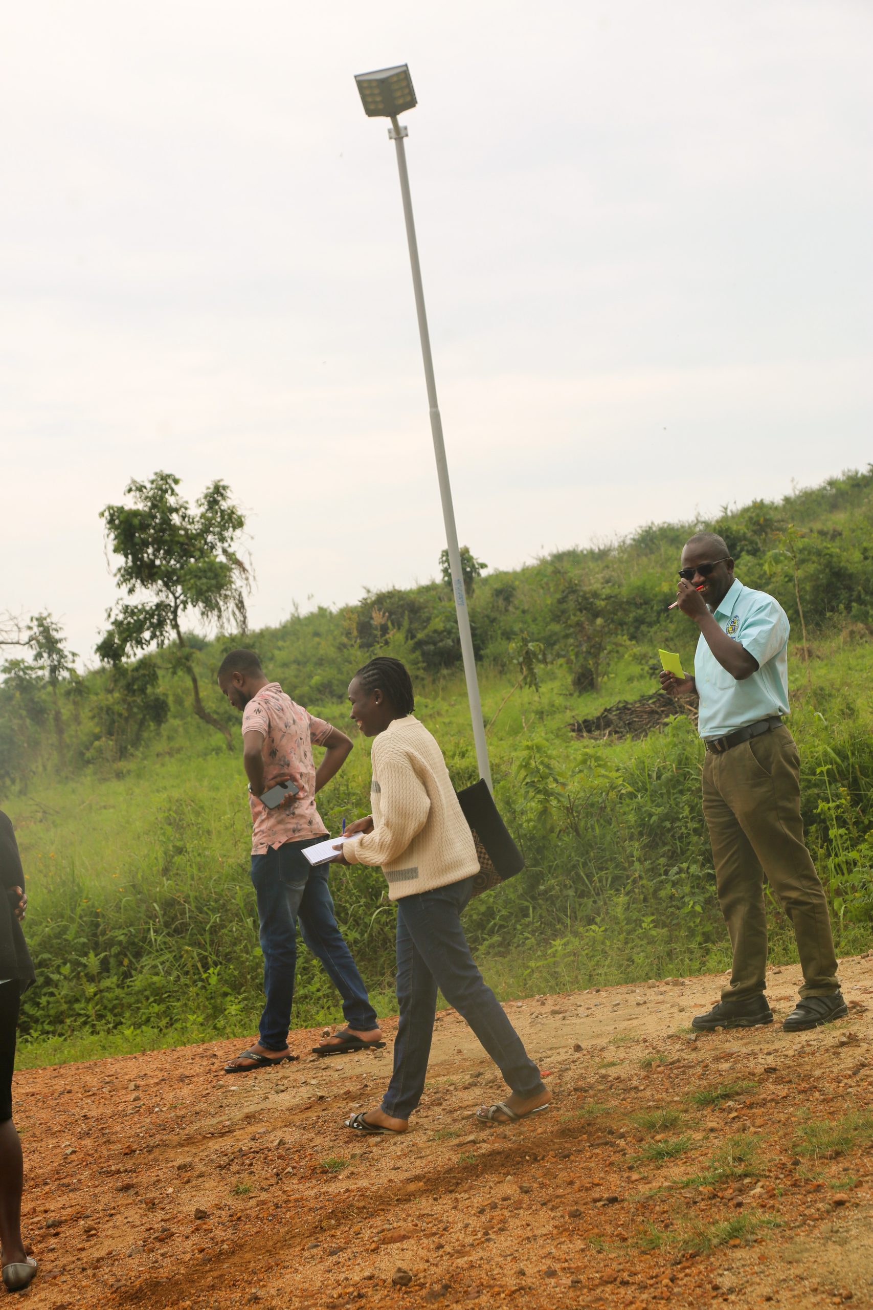 The inspection concluded with the assessment of a street light installed in a relatively isolated location near the solar water pump, approximately two kilometers from the main inspection route, demonstrating the project’s reach to strategic but less accessible areas of the campus.