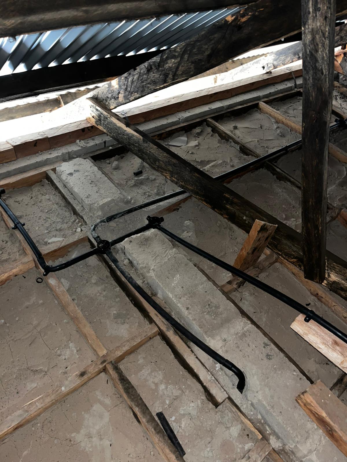 Timber was laid strategically to support distribution pipes across the building, facilitating efficient conduit piping installation.