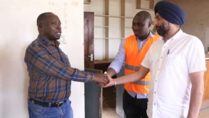 Dr. Tumuhimbise Manasseh hands over the site to Mr. Mandeep Singh, Managing Director of Khalsa Development (U) Limited