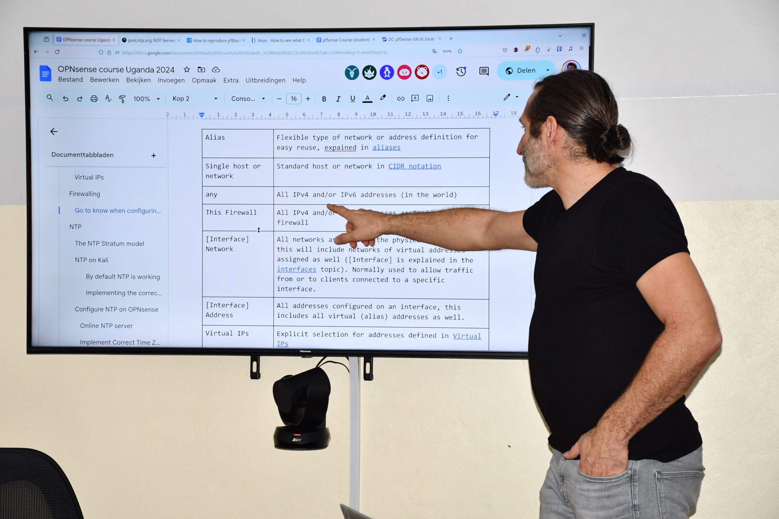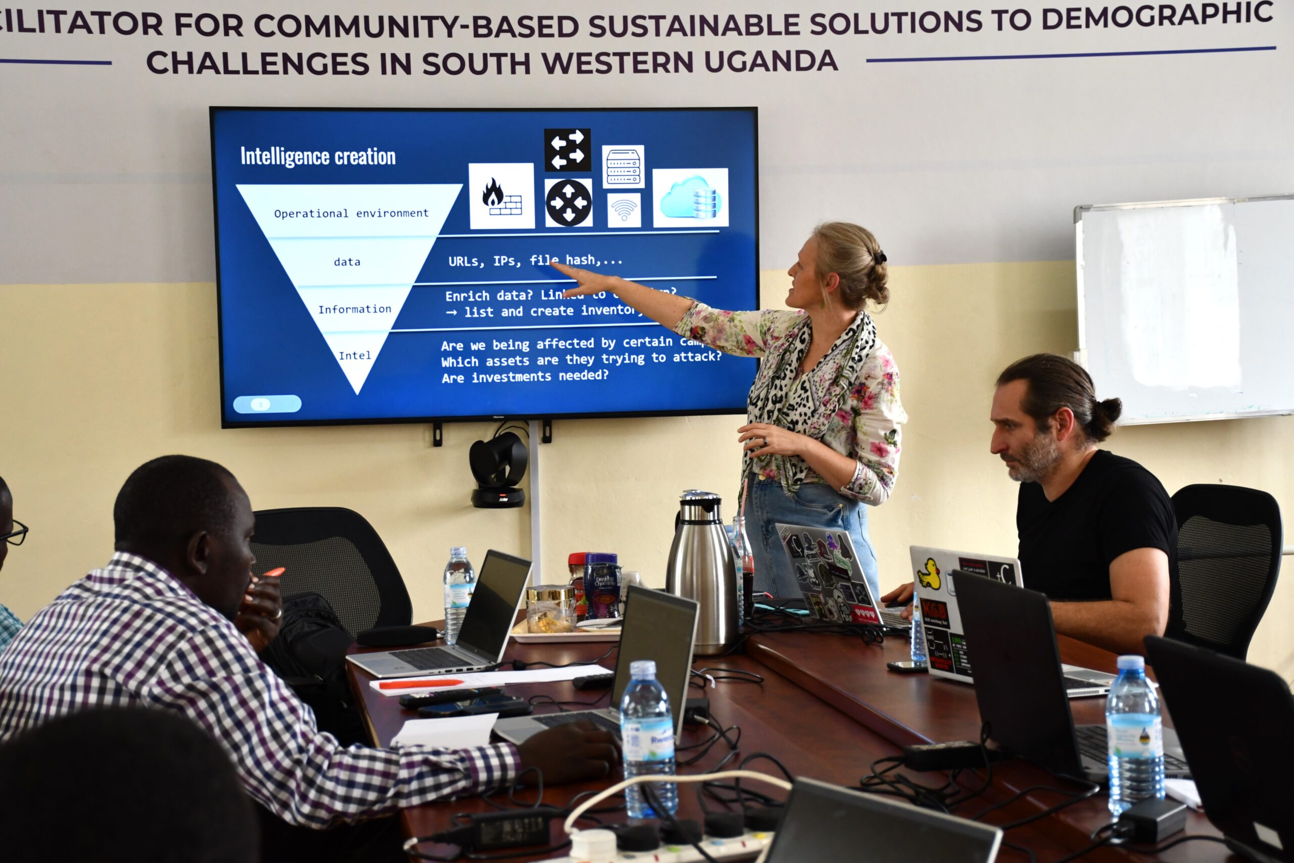 Left and right: photos taken during the cybersecurity training at MUST by Gunther and Liesbeth